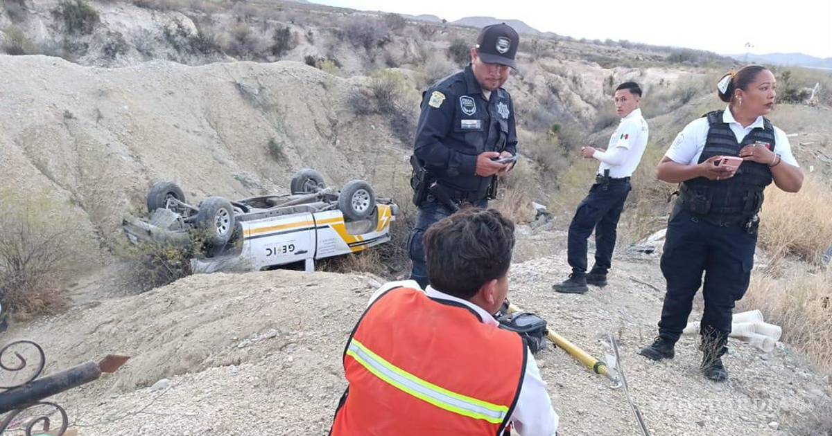 Dos personas que viajaban en una camioneta por la carretera Parras–General Cepeda terminaron en el fondo de un barranco tras sufrir un accidente.