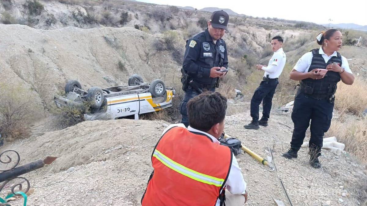 Vuelca camioneta y termina en arroyo en la Parras–General Cepeda; deja dos heridos