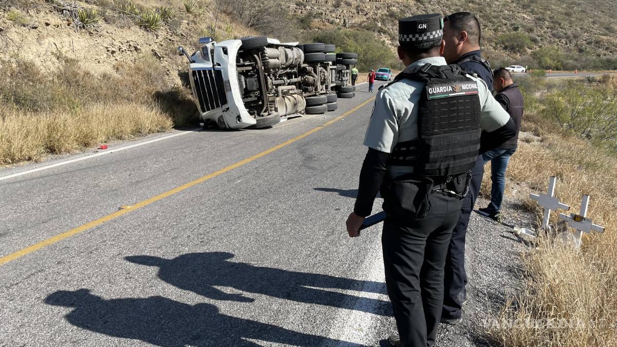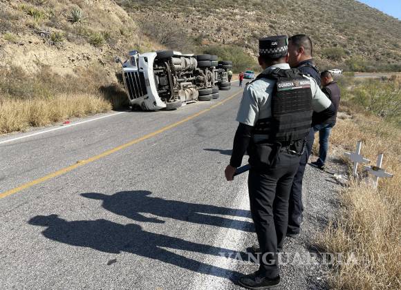 Vuelca tráiler por sobrecarga de material en la carretera Saltillo-Monclova