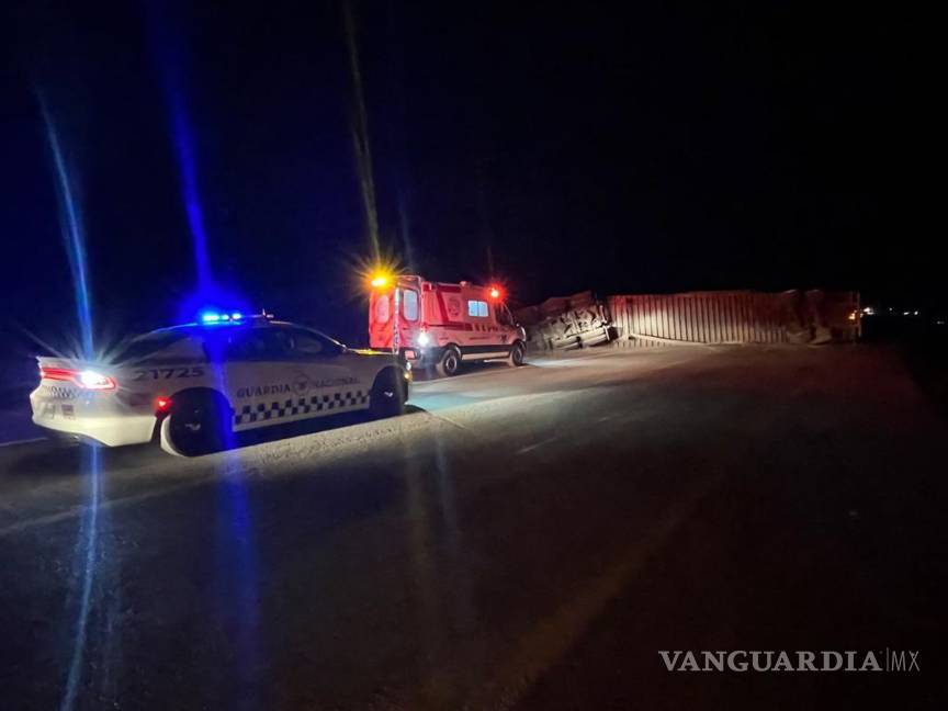 Un tráiler que transportaba muebles sufrió una aparatosa volcadura en el kilómetro 25 de la carretera federal 57, en el tramo de Santa Cruz-Ojo Caliente, en territorio de Ramos Arizpe, Coahuila, la noche de este viernes.