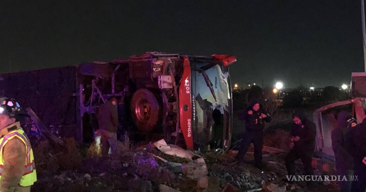 Un camión de pasajeros de la línea SENDA con 28 personas a bordo, provenientes de Monterrey con intenciones de llegar a Saltillo, terminó volcado a un costado de la carretera Monterrey-Saltillo en el municipio de Ramos Arizpe, dejando como saldo una persona fallecida y 12 personas lesionadas, incluyendo a dos en grave estado de salud.