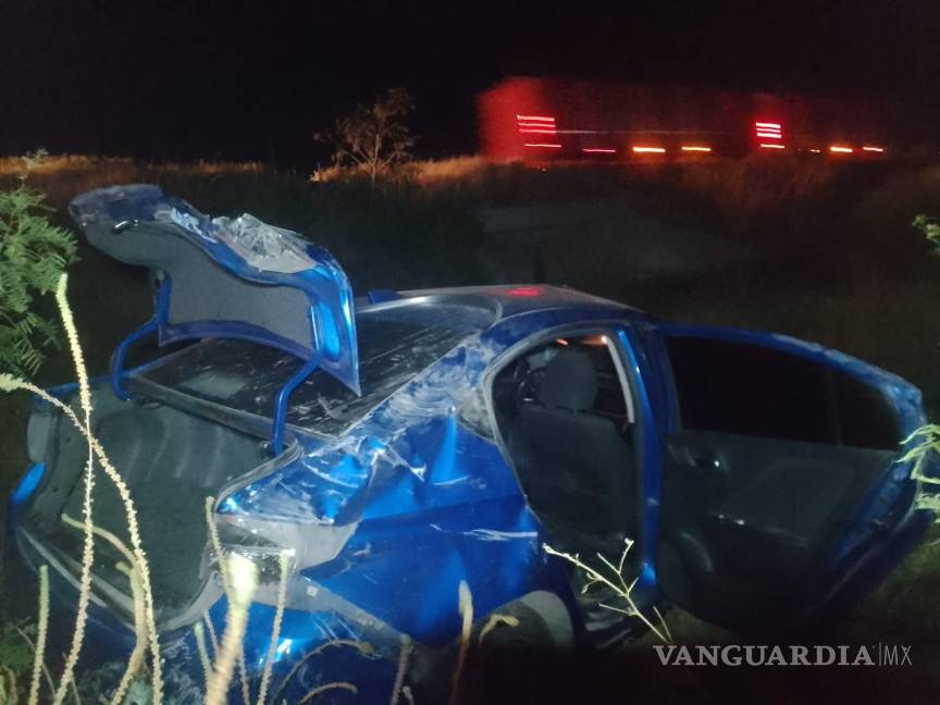 Vuelcan jóvenes tras esquivar una llanta en la Saltillo-Monclova; resultan lesionados