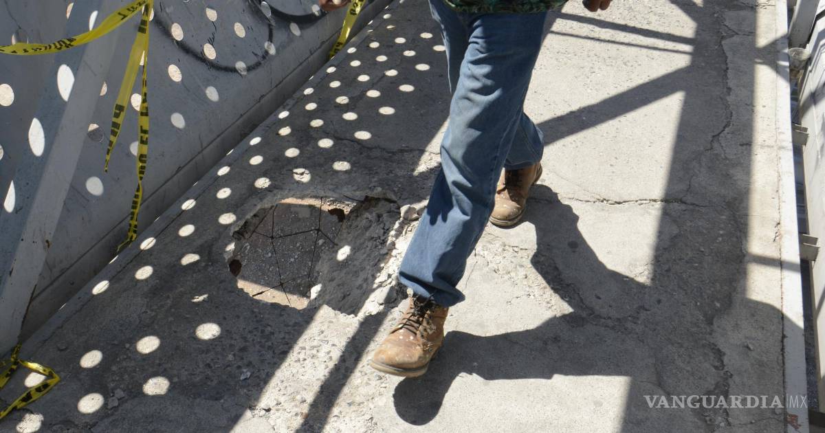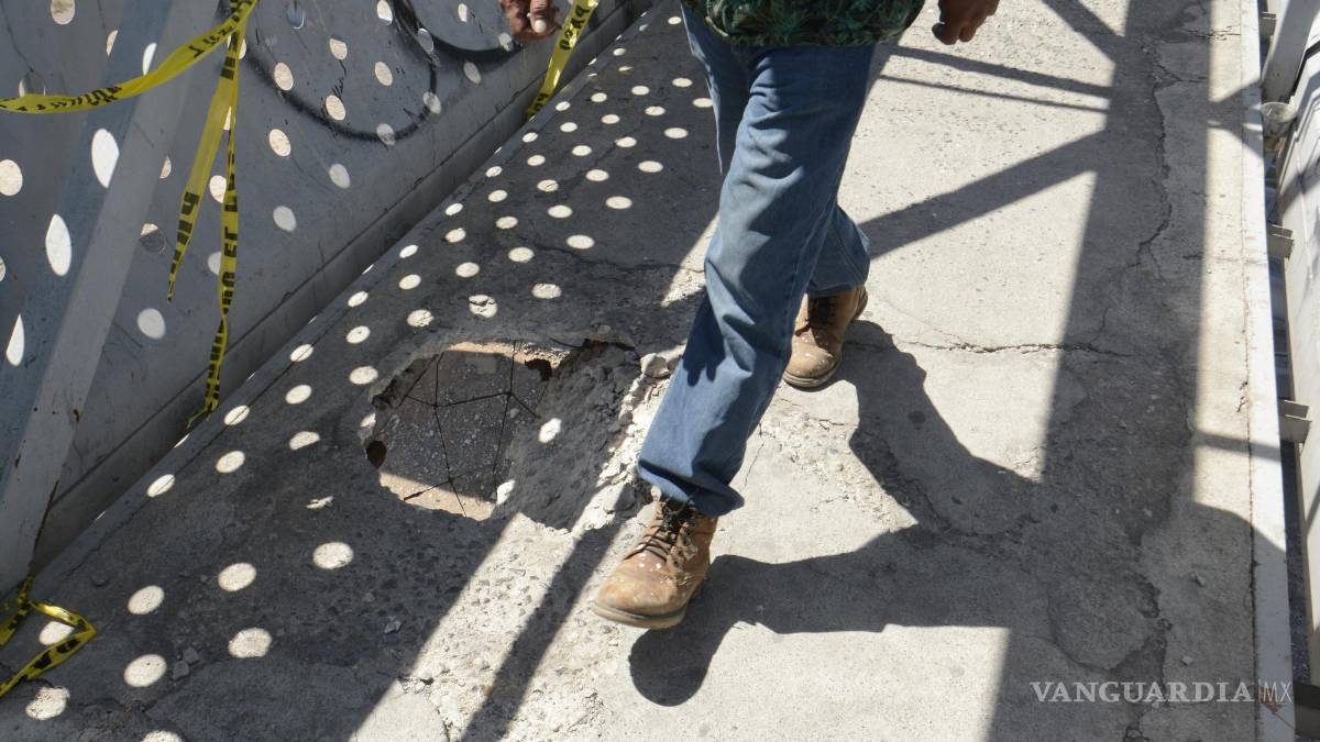 El puente peatonal ubicado sobre el bulevar Fundadores, a la altura de la colonia Valle de las Flores, al oriente de Saltillo, se encuentra sumamente deteriorado, y es que desde hace algunas semanas se resquebrajó el concreto y se formó un pozo que pone en peligro a los peatones que utilizan esta vía para cruzar entre colonias.