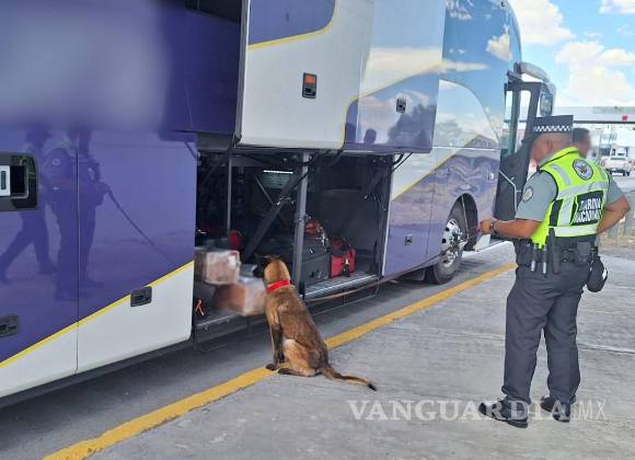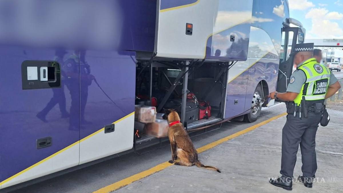 Ahora fue un binomio canino el que apoyando a los guardias nacionales que le marcaron el alto a un camión de pasajeros en el kilómetro 001+095 de la carretera Saltillo-Torreón, detectaron la droga sintética.