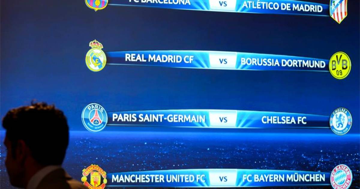 Los partidos de ida se disputarán los días 1 y 2 de abril y los partidos de vuelta el 8 y el 9 del mismo mes; Barcelona-Atlético y Manchester United-Bayern los duelos estrella