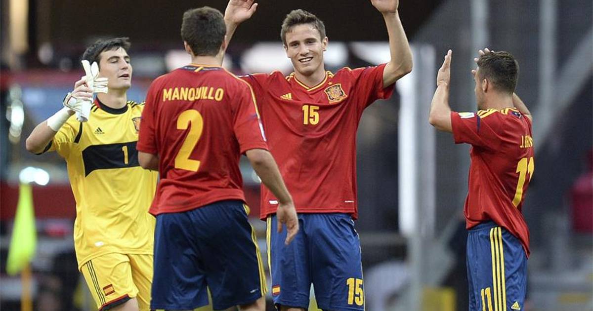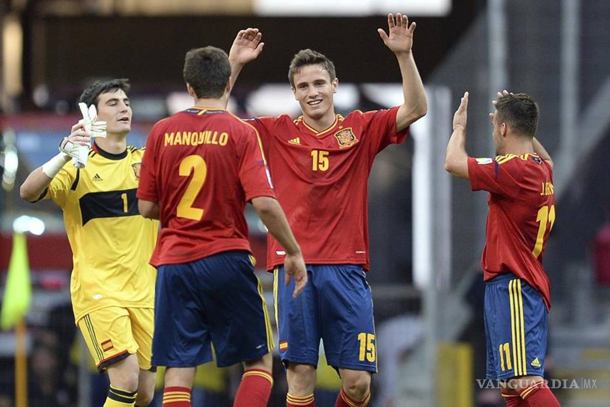 2 - España: Daniel Sotres, Javi Manquillo, Derik, Israel Puerto (Suso, m.52), Juan Bernat; Saú, Jose Campaña, Oliver Torres; Gerard Deulofeu (Denis Suárez, m.68), Jesé Rodríguez y Paco Alcácer (Diego Llorente, m.92)