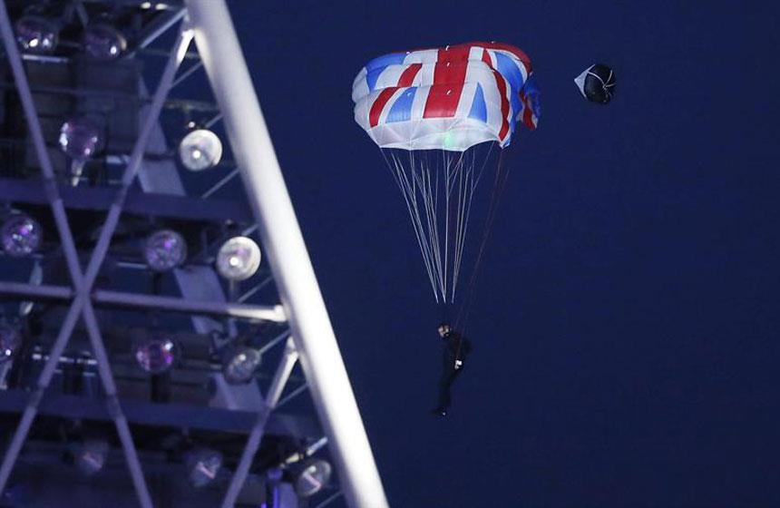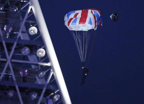 El ex oficial del Ejército se hizo famoso en los Juegos Olímpicos de 2012 como doble de Daniel Craig. Junto a Sutton se arrojó del helicóptero otro doble disfrazado de la reina Isabel II.