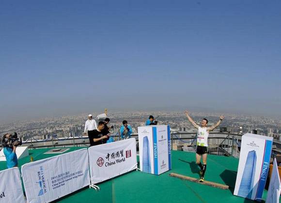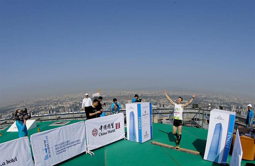 Pekín, China.- El alemán Thomas Dolt ganó hoy la primera carrera vertical que se celebra en China al subir a pie las 82 plantas del World Summit Wing de Pekín, el rascacielos más alto de Pekín con 330 metros de altura y en el que se congregaron cientos de personas.
