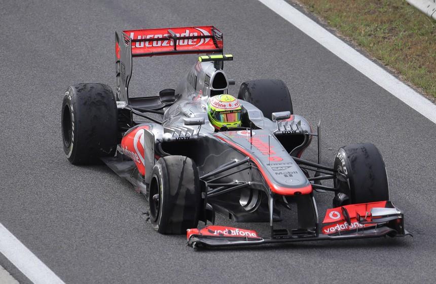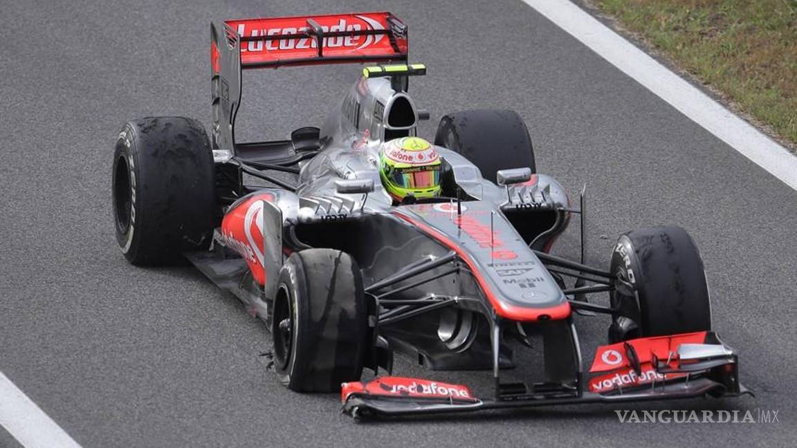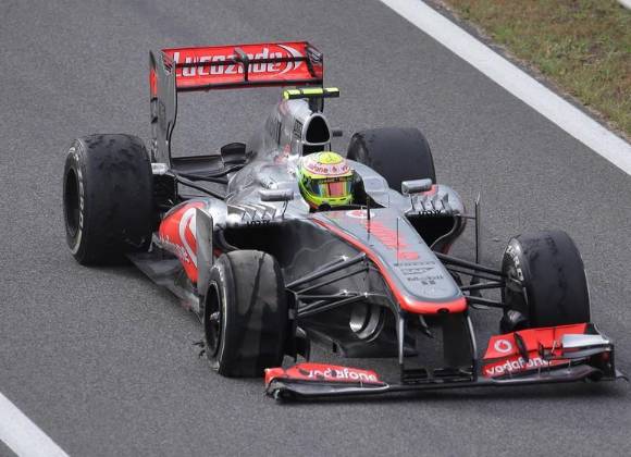 "A la velocidad a la que iba y con relativamente escasa zona de escapatoria, no tenía demasiado espacio para aminorar velocidad, por lo que fui directo al muro", explicó el mexicano. "El impacto fue bastante duro, pero, por fortuna, estoy bien", aclaró Pérez, que el año pasado sorprendió gratamente al acabar tres veces en el podio con un Sauber: fue segundo en Malasia y en Monza (Italia); y tercero en Canadá.