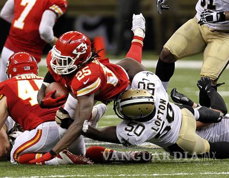 Nueva Orleans, EU. Ryan Succop pateó seis goles de campo, uno de los cuales forzó el tiempo extra y luego otro de 31 yardas, para que los Jefes de Kansas City derrotasen el domingo 27-24 a los Santos de Nueva Orleans.