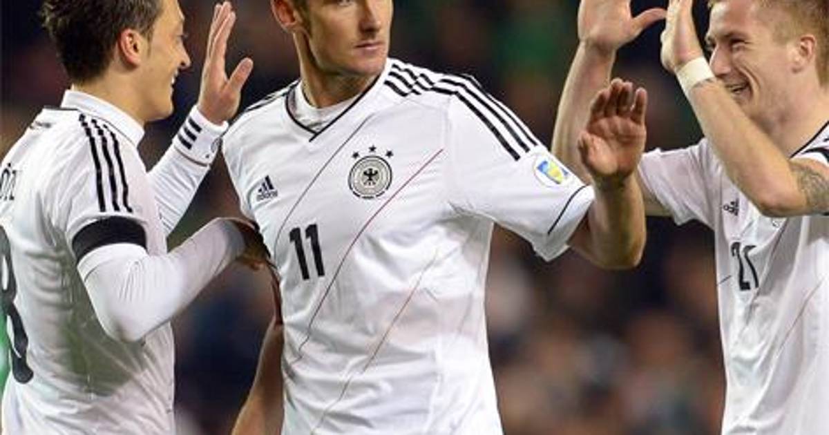 En el complemento, los germanos consiguieron tres goles consecutivos para acabar con las esperanzas de los irlandeses, ya que al 55, Mesut Ozil, de penal puso el 3-0, el experimentado Miroslav Klose colocó el 4-0 al 58 y Toni Kroos logró el 5-0 al 61.