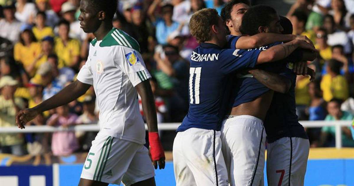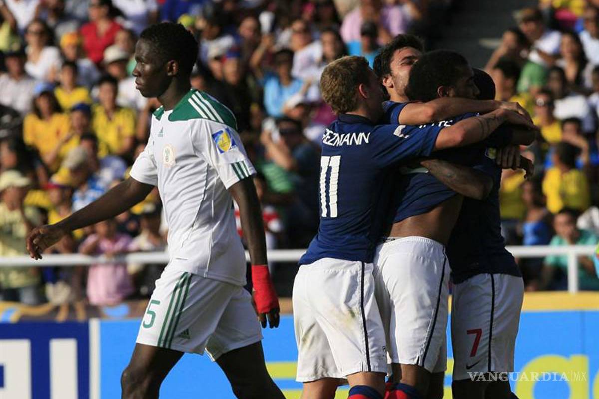 Cali, Colombia. Goles de Alexandre Lacazette y Guieda Fofana en la prórroga encaminaron a Francia a la victoria el domingo 3-2 ante Nigeria y atrapó el pase a las semifinales del Mundial Sub20.