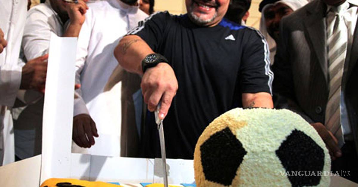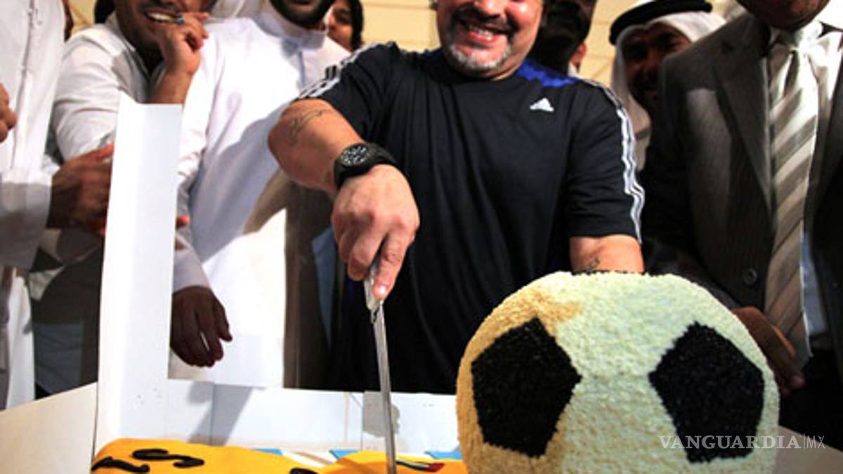 Emirates Arabes.- Diego Maradona celebró su 51mo cumpleaños en Dubai con el equipo de fútbol Al Wasl, que ha estado dirigiendo desde julio.