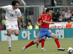 España recién encontró la red rival a los 85 minutos cuando el remate de Navas desde 25 metros superó al arquero surcoreano Jung Sung-ryong que acababa de rechazar un disparo envenenado de David Villa, que había entrado como suplente.