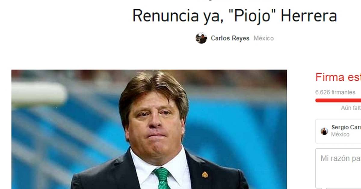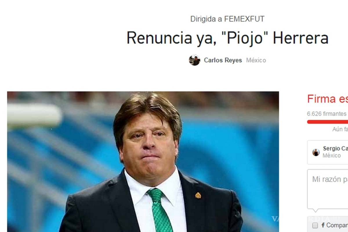 Un fanático de la Selección Mexicana, Carlos Reyes, lanzó a través del portal Change.org la solicitud a la Femexfut de que cese al director técnico nacional, ante los malos resultados pero sobre todo por el actuar del seleccionador en los últimos días.
