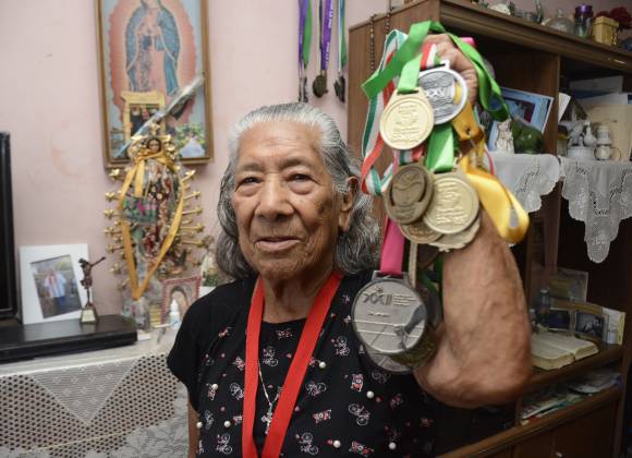 Leonarda Zúñiga nació en 1929 y desde hace 7 meses enfrenta la vida sin su esposo, pero nada de eso frena su amor por la vida, su tejido y el atletismo
