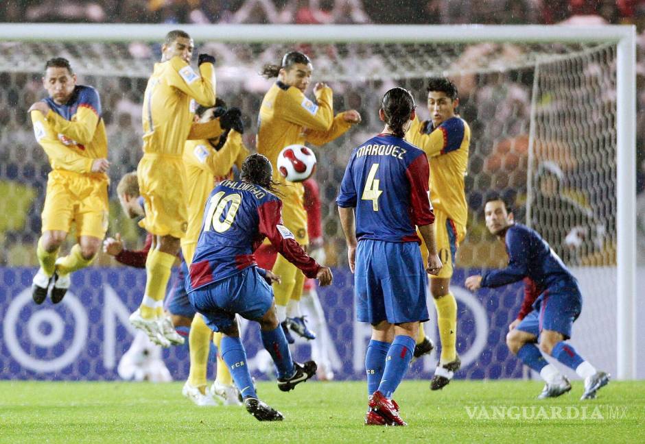 A finales del 2006, Águilas y culés disputaron su primer partido oficial en las Semifinales del Mundial de Clubes. La plantilla dirigida por Frank Rijkaard pasó por encima de las Águilas al llevarse el triunfo por 4-0.
