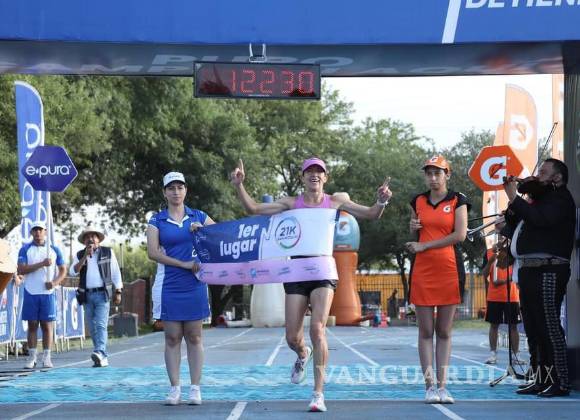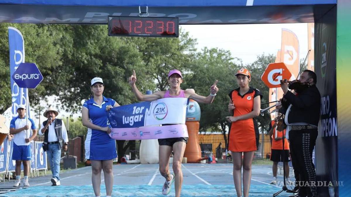 La torreonense logró subir al primer lugar del podio con un tiempo de 1:22:30, una semana después de su triunfo en la 21K Coahuila