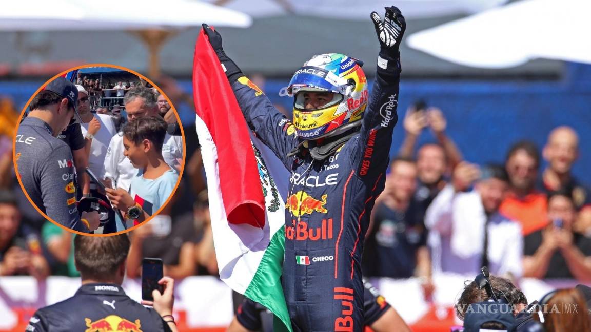 Al percatarse del incidente, “Checo” hizo señas a los policías para que dejaran acercar al niño, quien le pidió un autógrafo y una foto al piloto tapatío.