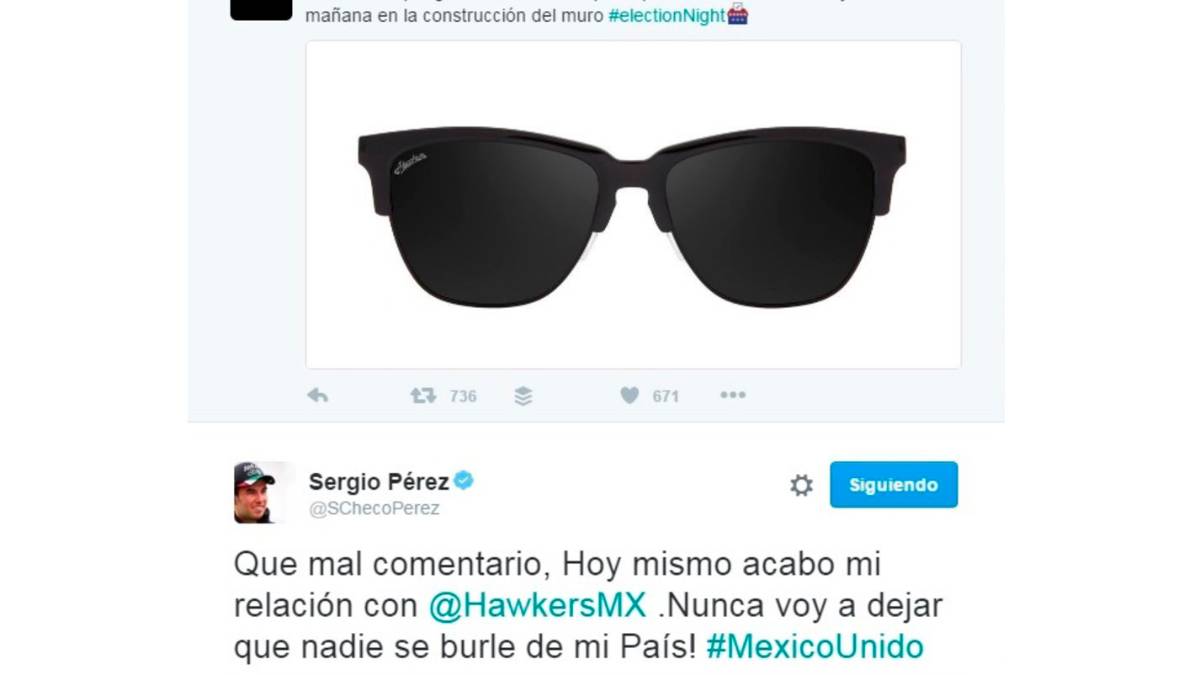 Sergio "Checo" Pérez, piloto mexicano de la Fómrula Uno, estalló contra la compañía de lentes Hawkers debido a una publicación donde se burlaban de los mexicanos.