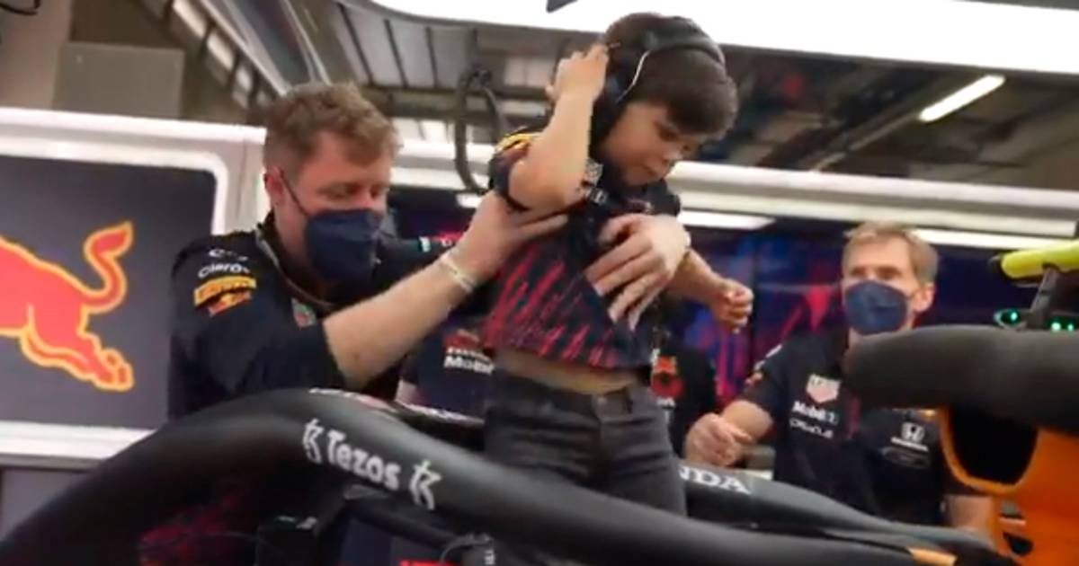 Red Bull compartió un video en el que se observa al pequeño mientras lo subem al monoplaza del mexicano: "Checo junior echa un vistazo más de cerca al auto de su papá", decía el texto que acompañaba al viodeo.