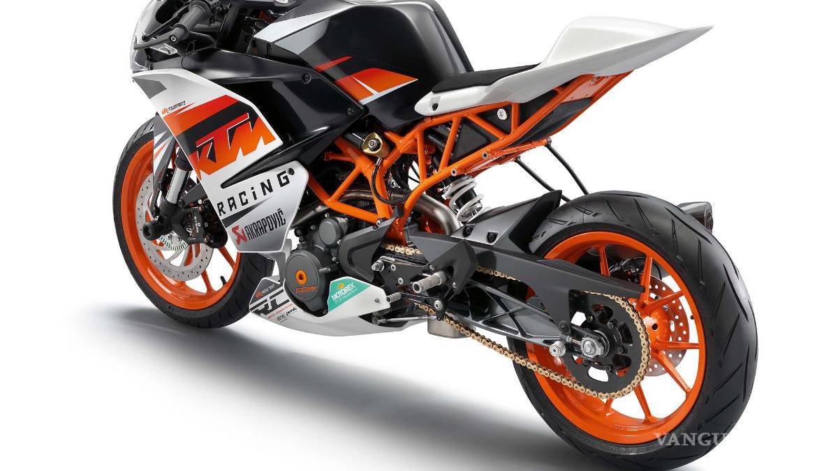 Se presenta con un motor de doble cilindro de 375 cc, cuatro válvulas y refrigeración líquida acoplado muy bien a una caja de cambios de seis velocidades que será capaz de ofrecer una potencia máxima de 40 CV, este propulsor se complementa con un sistema de frenado similar al del modelo RC 390, este sistema le permitirá al conductor la seguridad y la confianza que transmite ABS, dicho sistema está compuesto por discos de frenos delanteros y traseros, suspensiones WP, pinzas de Bembo, pistones y dos deslumbrantes llantas negras de la reconocida casa de neumáticos Pirelli que se perfeccionan con detalles de diez radios en color naranja.