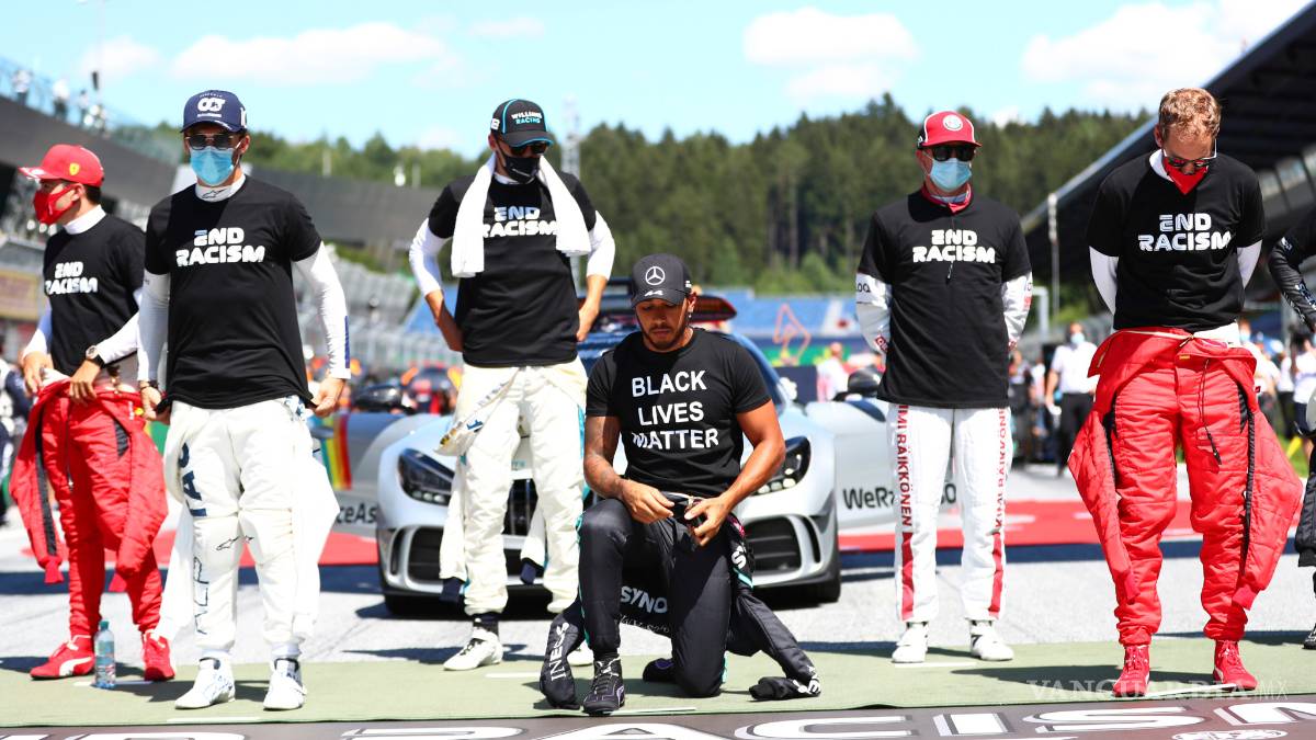 El fin de semana pasado, previo al Gran Premio de Austria, 14 de los 20 pilotos de la F1 pusieron una rodilla en tierra. El hecho ocurrió poco antes de que se interpretara el himno nacional de Austria, y formó parte de un mensaje contra el racismo, en el que decidieron participar los pilotos, quienes llevaban camisetas negras.
