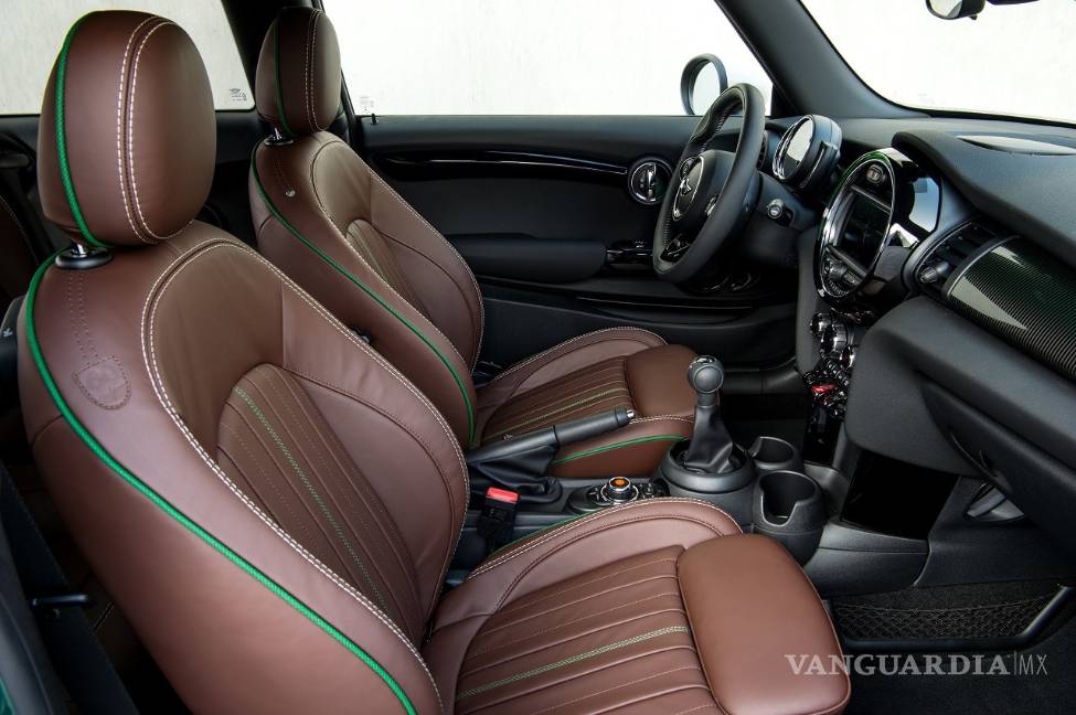 Al estar basado en una de las ediciones más equipadas, el Mini 60 Years Edition cuenta con una completa lista de equipo de serie que suma volante forrado en cuero, asientos con tapicería específica Yours Cuero Lounge 60 Years en color Dark Maroon y una discreta franja verde en los costados que les brinda un look mucho más atractivo. También es de serie el climatizador de doble zona, el sensor de lluvia y el control de crucero, entre muchas otras características.