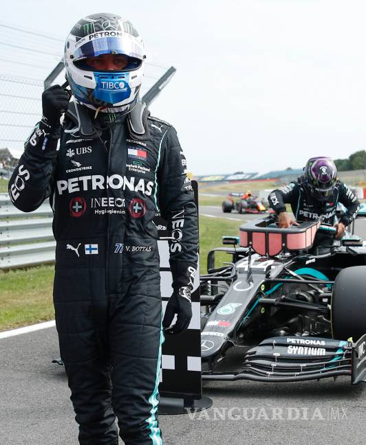 REINOUNIDO.- El piloto finlandés de Mercedes Valtteri Bottas se impuso a su compañero británico Lewis Hamilton y ganó la ‘pole position’ en la sesión de clasificación del Gran Premio del 70 Aniversario, que le permitió salir desde el primero en la carrera de este domingo en el circuito de Silverstone.