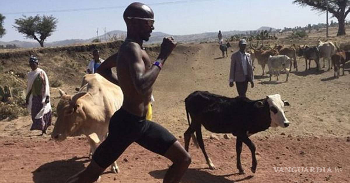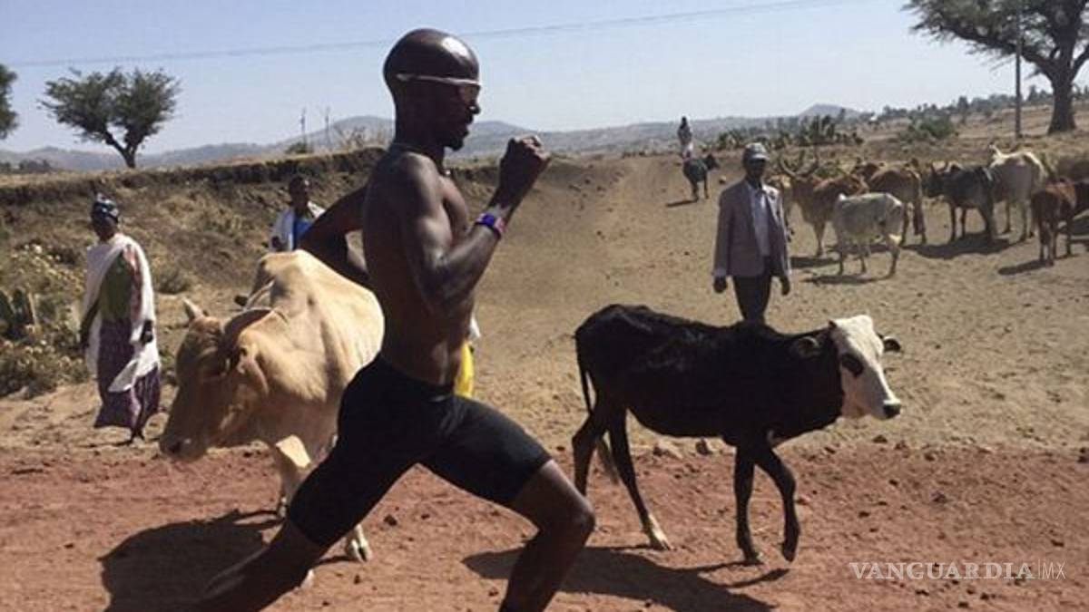 Bajo un intenso sol y rodeado de animales, el entrenamiento de uno de los mejores atletas del mundo