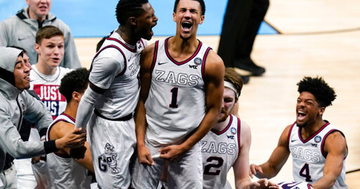 El jugador de primer año de Gonzaga encestó un disparo justo cuando sonaba la bocina, desde el lugar donde está pintado el logotipo del Final Four. Su universidad se impuso 93-90 en tiempo extra a UCLA el sábado por la noche.
