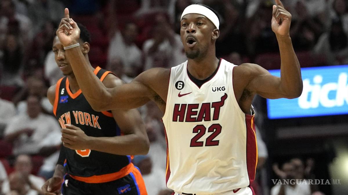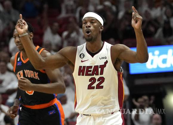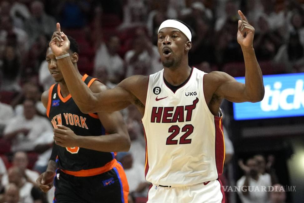 MIAMI.— Jimmy Butler tuvo 27 puntos y 10 asistencias, Bam Adebayo terminó con 23 unidades y 13 rebotes para que el Heat de Miami se acercara a un triunfo de disputar sus terceras finales de Conferencia en los últimos cuatro años al vencer el lunes por 109-101 a los Knicks de Nueva York.