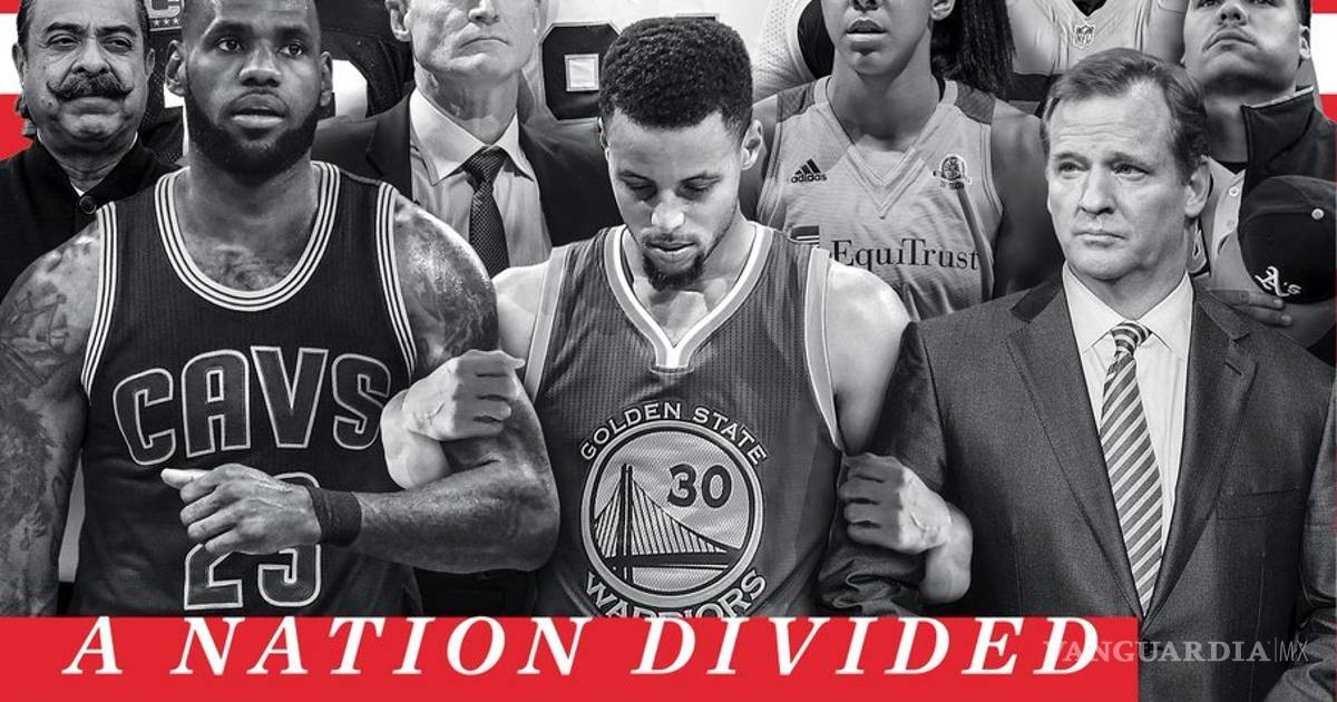 La portada tiene que ver con las protestas durante la entonación del himno nacional antes de los partidos de la NFL del fin de semana pasado. En una imagen alterada digitalmente, Curry aparece con los brazos entrelazados con LeBron James y el comisionado de la NFL, Roger Goodell.