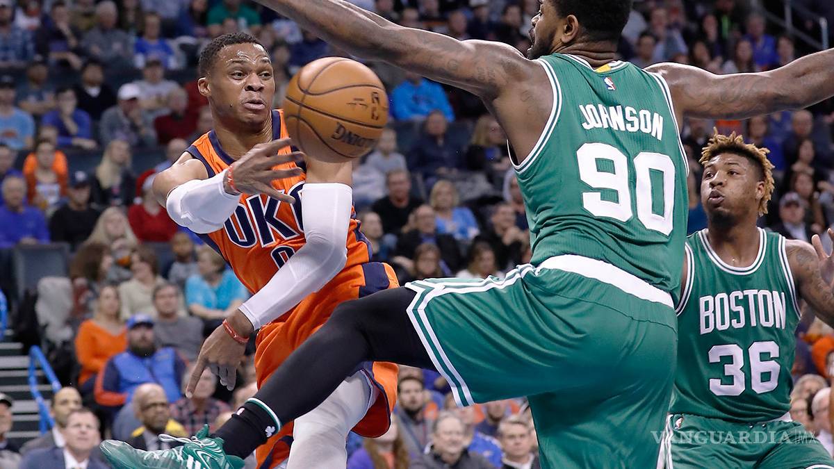La racha de encuentros consecutivos de Russell Westbrook con un “triple doble” terminó en siete, pero el astro anotó 37 puntos, incluidos 23 en la segunda mitad, para ayudar a que el Thunder de Oklahoma City superara 99-96 a los Celtics de Boston.