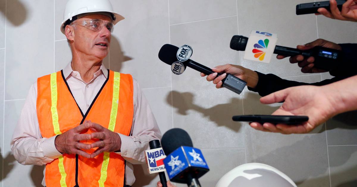 El comisionado habló con los reporteros en el pasillo del piso de las suites del nuevo estadio de los Rangers de Texas que se encuentra junto al hotel en que los dueños se reunirán hasta el jueves. El estadio será inaugurado la próxima temporada.