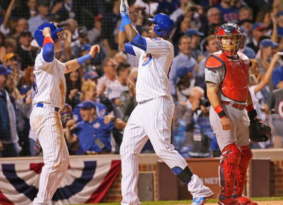 Chicago, Estados Unidos.- Kris Bryant y Jorge Soler sacudieron sendos jonrones de dos carreras, parte de una descarga récord de seis cuadrangulares de los Cachorros de Chicago en la postemporada, al conseguir el lunes una victoria 8-6 sobre los Cardenales de San Luis en el tercer juego de la serie de playoffs de la Liga Nacional.
