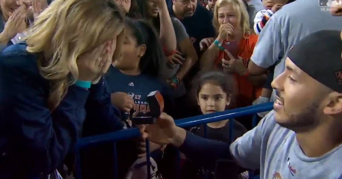 Jugador de los Astros le pide matrimonio a su novia tras ganar la Serie Mundial