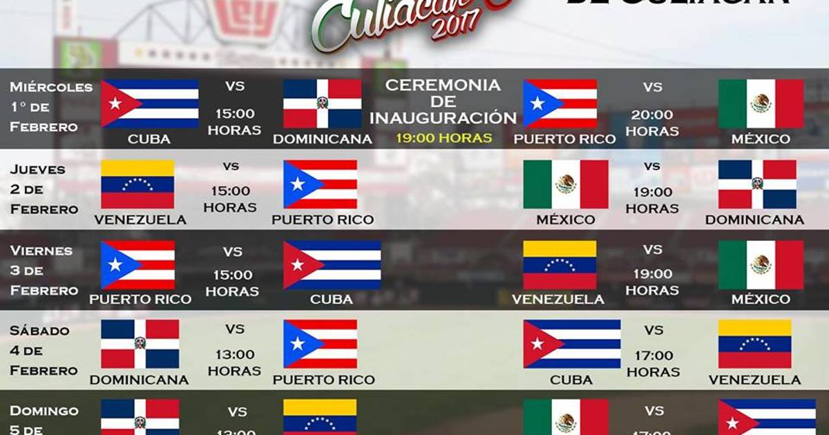 En redes sociales salió el calendario del evento, que iniciará el próximo primero de febrero a las 15:00 horas con el juego entre Cuba y República Dominicana.