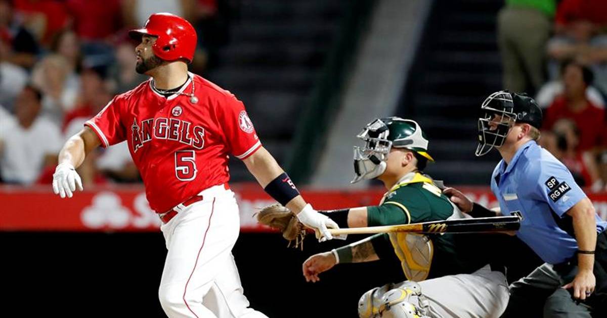 Pujols pega par de cuadrangulares, llega a 612 de por vida y asciende al séptimo lugar en la historia de las Grandes Ligas en ese apartado y los Angelinos de Los Ángeles vencieron 10-8 a los Atléticos de Oakland.
