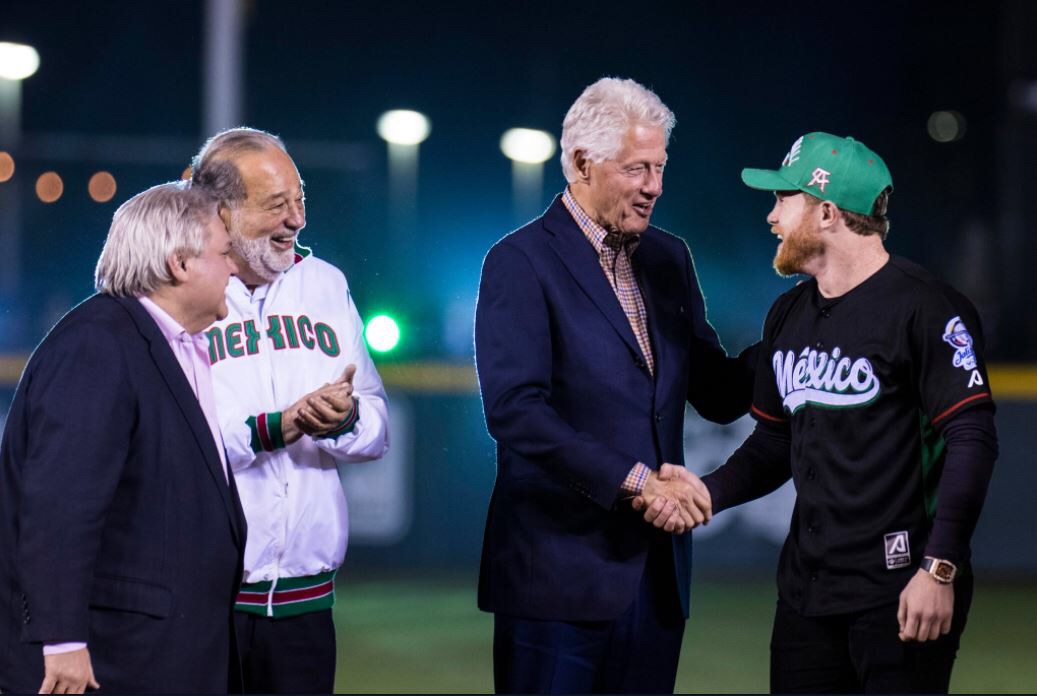 Carlos Slim se hizo acompañar de Bill Clinton y Carlos Bremer en la inauguración de la Serie del Caribe en el Estadio Charros de Jalisco, quienes estuvieron en el terreno de juego con el tapatío Saúl “Canelo” Álvarez, encargado de lanzar la primera bola.