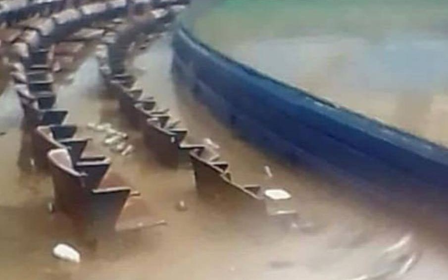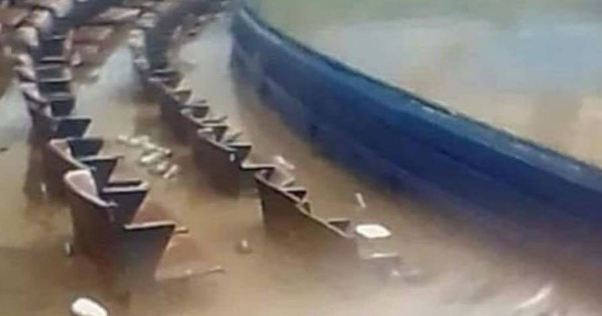 Tras las fuertes lluvias, estadio de beisbol termina hecho alberca