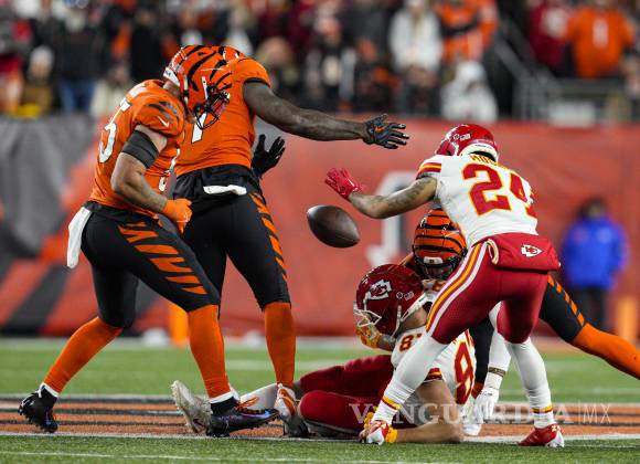 Con los Chiefs con ventaja de 24-20, el linebacker de Cincinnati Germaine Pratt le arrebató el balón a Travis Kelce tras una recepción y recuperó el balón perdido.