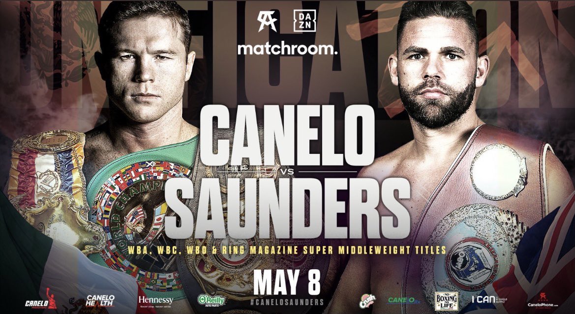 Matchroom, empresa con la que el "Canelo" está asociado, informó que el púgil tapatío se medirá con el británico Billy Joe Saunders (30-0, 14 KO's) el 8 de mayo, en sede por definir.
