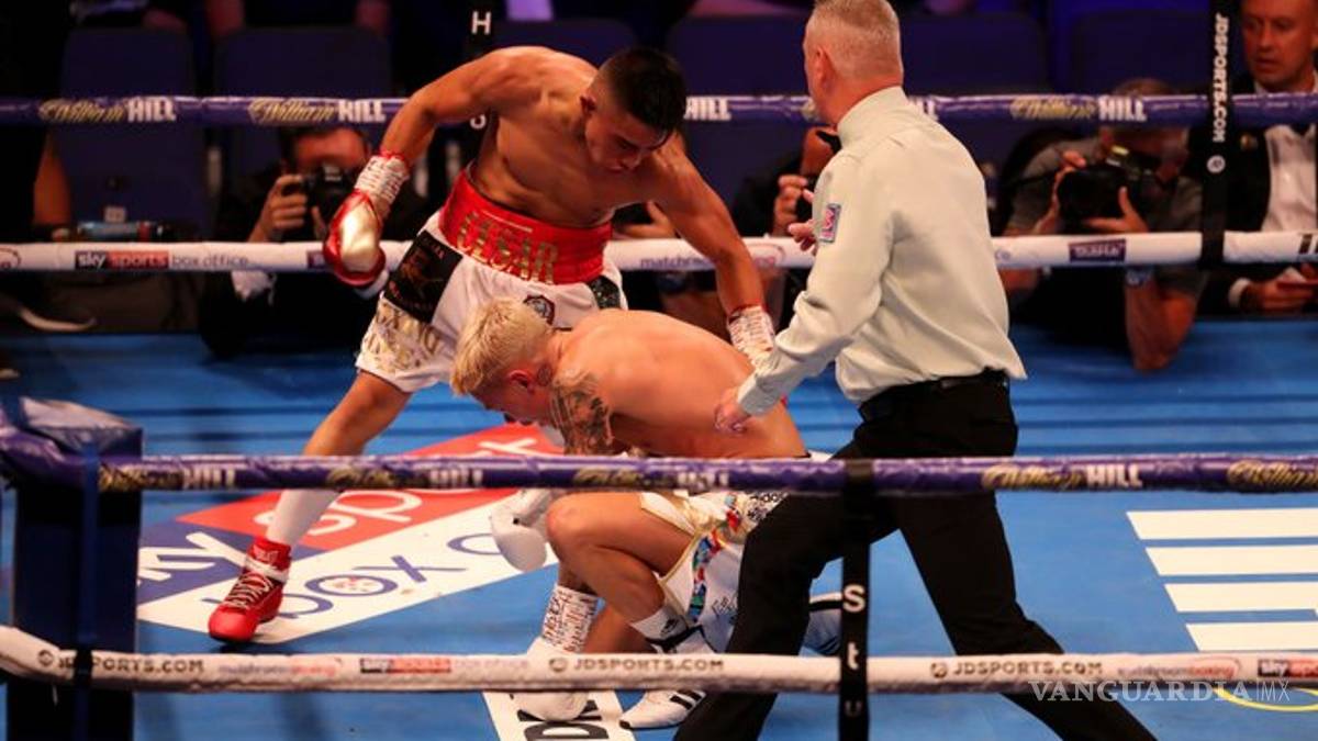 El mexicano dominó por completo al británico y en el tercer asalto lanzó una lluvia de golpes al inglés que lo mandó a la lona.
