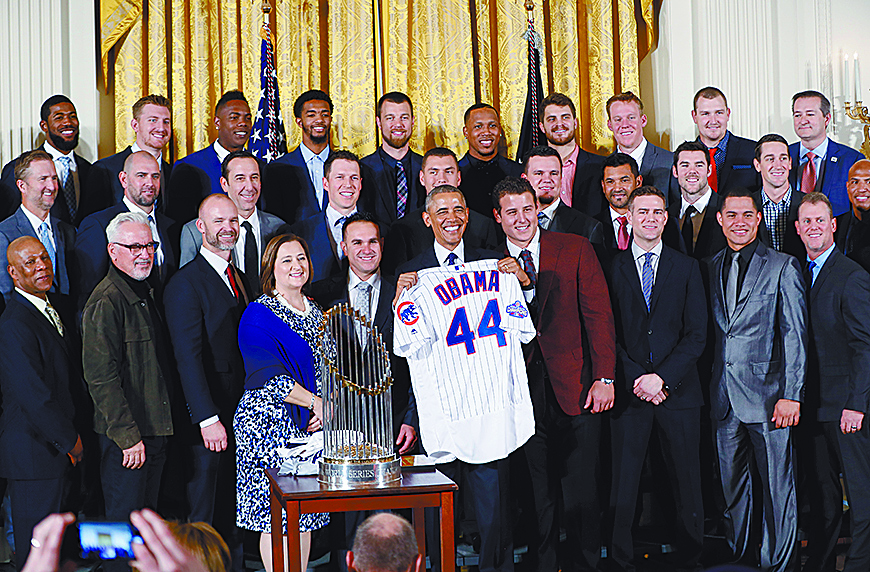 Aunque es bien sabido de su afición a los Medias Blancas, Obama apoyó a los Cachorros en la pasada Serie Mundial, por lo que ayer se sintió orgulloso de recibir al equipo campeón de las Grandes Ligas.