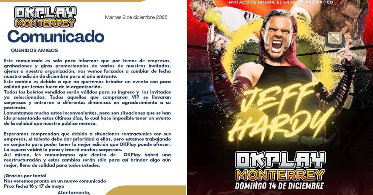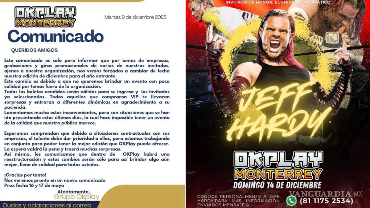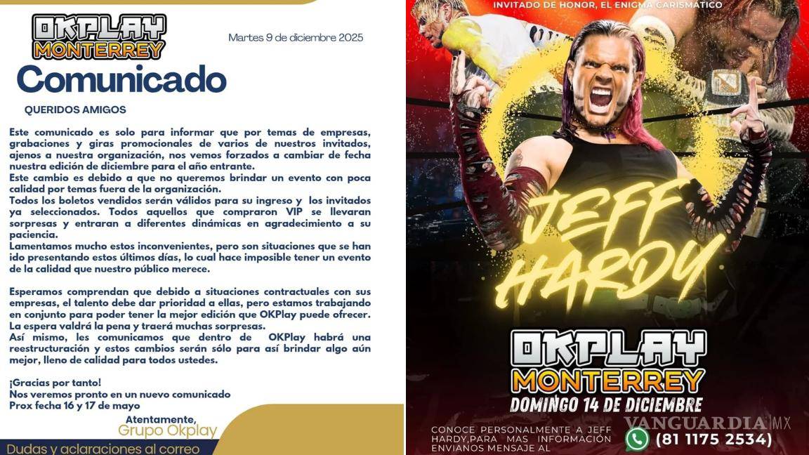 La convención, prevista para este fin de semana en el Centro de Monterrey, quedó cancelada a pocos días de celebrarse, en medio de señalamientos por la ausencia anticipada de Jeff Hardy