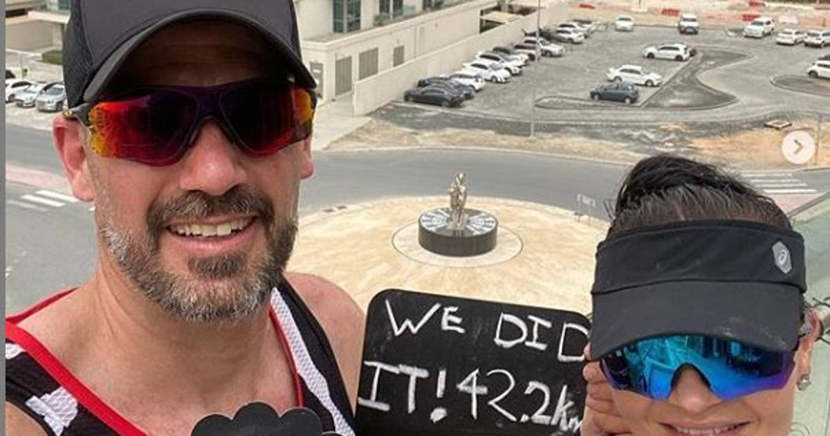La pareja de sudafricanos residentes en el emirato retransmitieron el maratón a través de las redes sociales para animar a practicar deporte a todos aquellos encerrados en sus casas por la pandemia en muchos países del mundo.