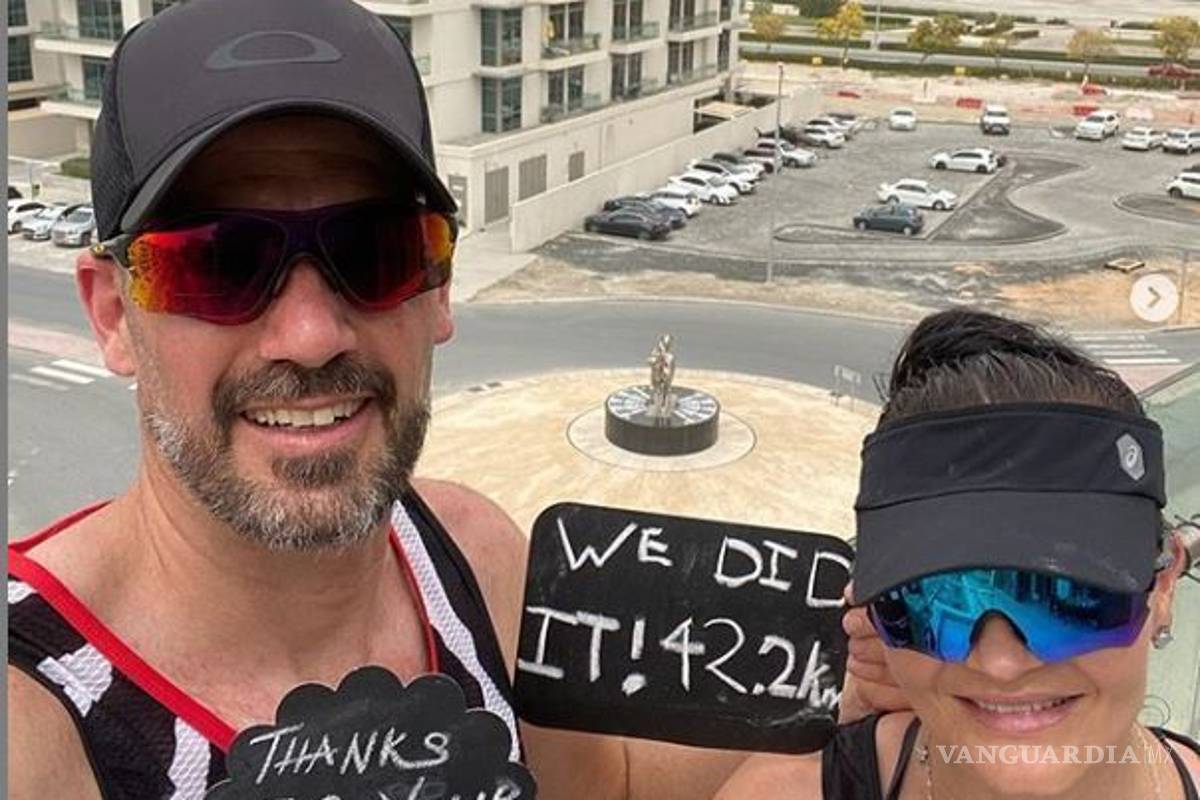 Los atletas Collin Allin y su esposa Hilda corrieron un maratón, lo curioso fue que a diferencia de otras veces lo hicieron en el balcón de su casa de Dubái, donde lo recorrieron 2,220 veces para completar una distancia de más de 42 kilómetros.