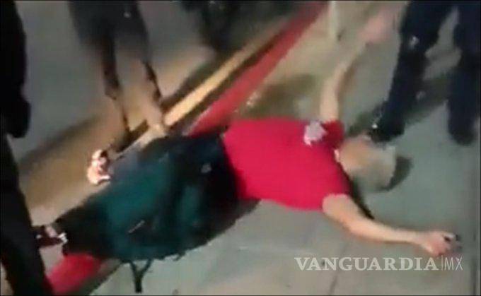 Posteriormente lo subieron a una patrulla para que quedara a disposición de las autoridades correspondientes debido a las faltas administrativas en las que incurrió, esto es, disturbios en la vía pública, sin que se haya dado a conocer su situación actual.