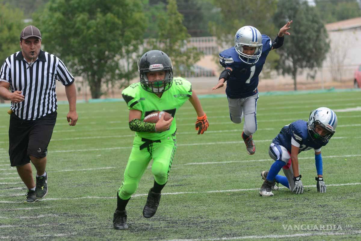 Mientras que en el campo “Jorge Castro Medina, las Águilas de Saltillo recibieron la visita de Potros Salvajes. Los emplumados cayeron 18-0 en Moscos y complicaron su calificación a la postemporada, pero levantaron el vuelo en Hormiguitas, al ganar 18-6 y lograron mantener viva la esperanza de verse en ronda de semifinales.